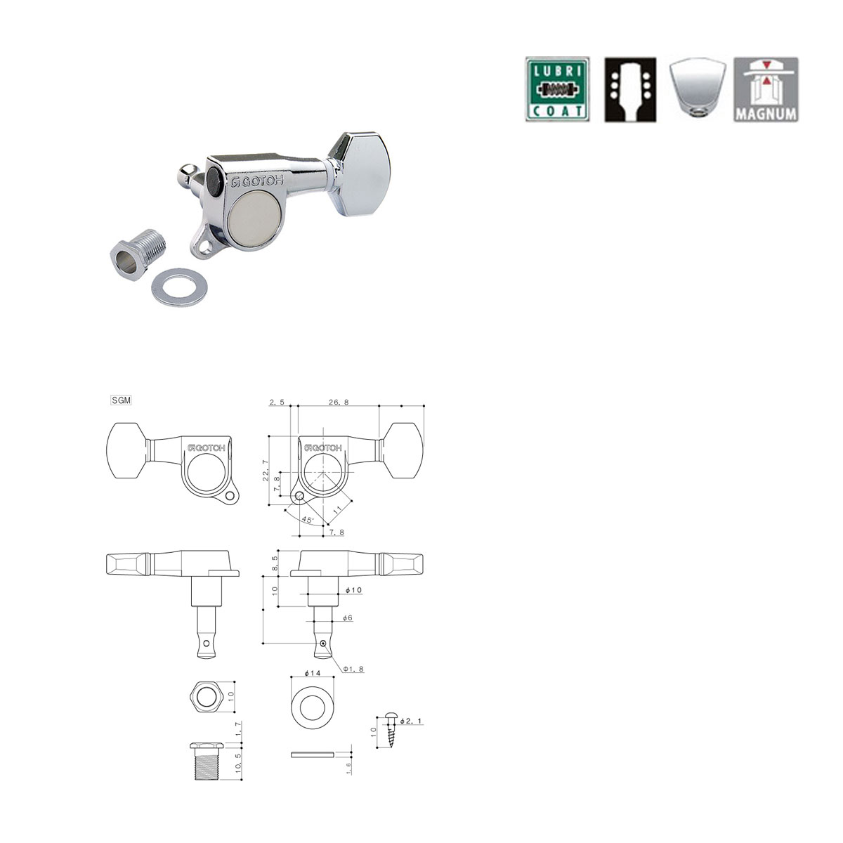 Gotoh SGM MG-04С CHROME 3+3 - комплект замковых колков для электрогитары. Хромированное покрытие, расположение колков 3+3.